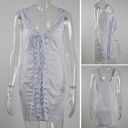 Solid color style,with backless and deep v-neck design for a seductive look,while its lace-up design at front makes