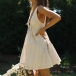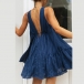 Sexy Backless Deep V-neck Sleeveless Solid Color Drawstring Dress