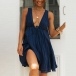 Exhibit your incredible style sense with this sexy and flirty dress. It comes with a solid color,the backless and deep v-neck design can express your sexy and alluring sense. And the lace-up drawstring design at the waist part will make this piece look more attractive and distinctive. For the summer days,this dress can easily strike your mind.