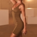 Seductive appeal can come easily once you slip into this dress. The backless and deep v-neck design make this piece look so sexy and alluring,while the tight silhouette design can portray your perfect curve. Dress it up with your sexy heels,you can easily be a pleasant sight to draw more attention.