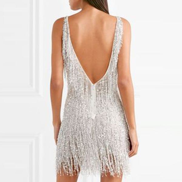 There is no doubt that all the eyes would be focused on you when you don this dress. The tassel details make this piece look so distinctive,while the backless and deep v-neck design can offer you a sexy and flirty look. When invited to a night event,you can trust in this piece to arouse a splash!