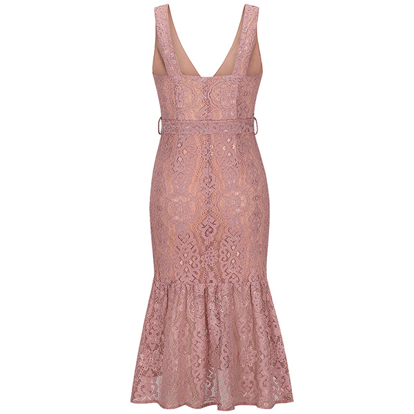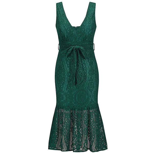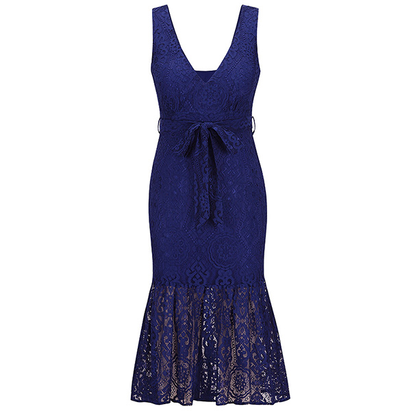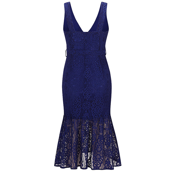 It is an easy thing to exude your flirty and feminine side through this sleeveless lace dress. The backless and deep v-neck design will make you look more alluring,while the tie-belt design at the waist part will enrich the design style as well as boost your entire charm. So why not take interest in it?
