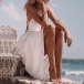 When walking on the beach with this dress,a beautiful landscape would appear instantly. Sling style,
