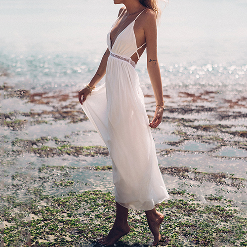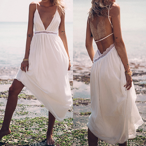 designed with backless,a deep v-neckline and a maxi length,sexy yet feminine. In some sunny days,