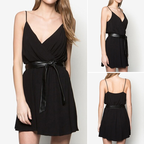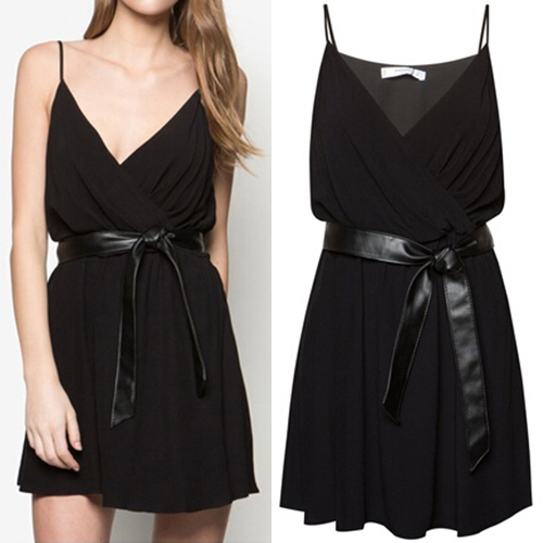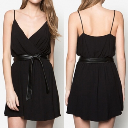 Crafted from soft and breezy chiffon material,this sling chiffon dress can give you a cool summer.