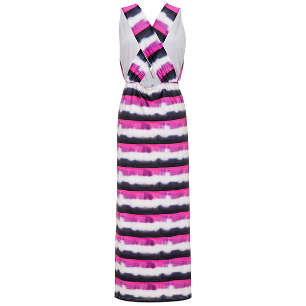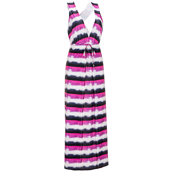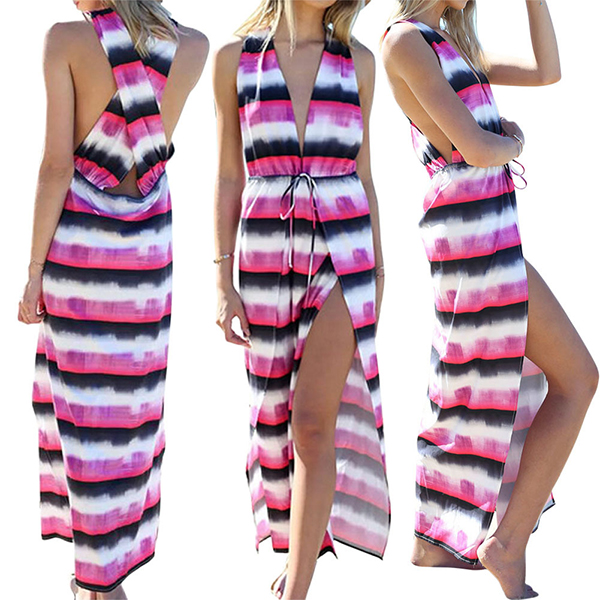 You would become a beautiful landscape when walking barefoot on the beach with this dress. Colorful striped design
