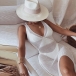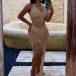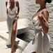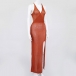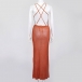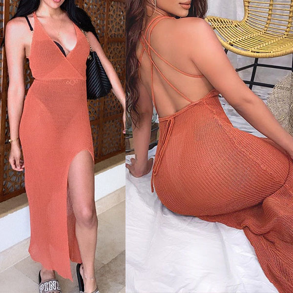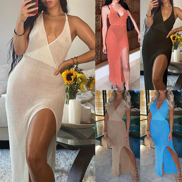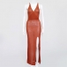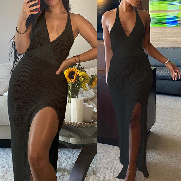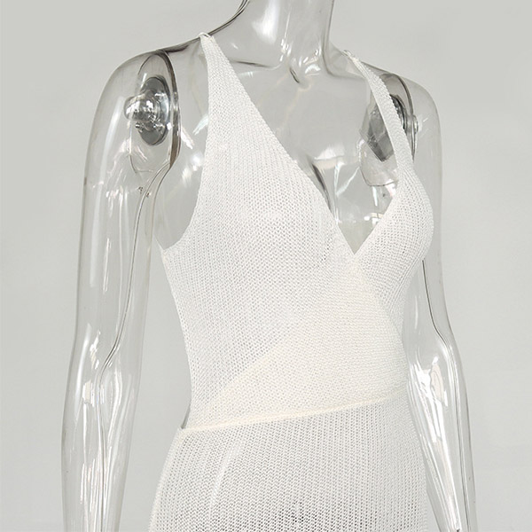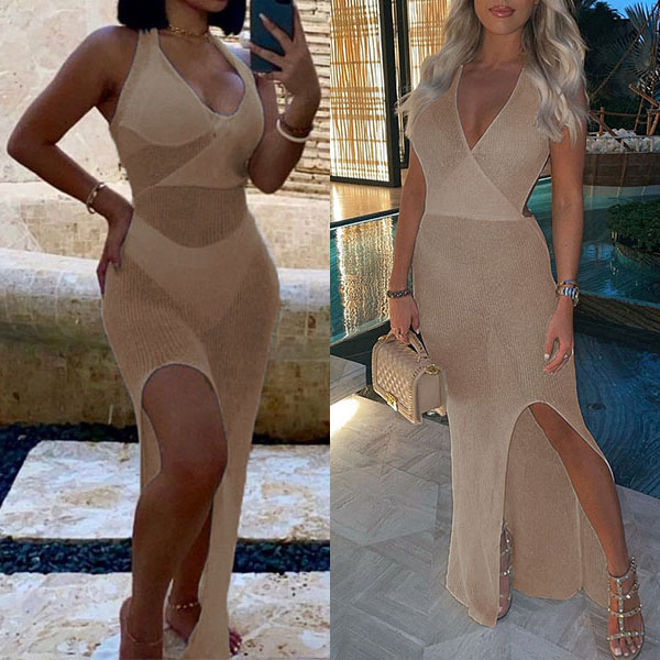 Sexy Backless Deep V-neck Slit Hem See-through Sling Dress