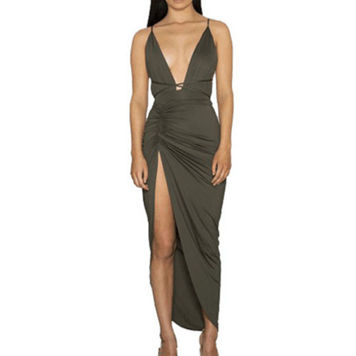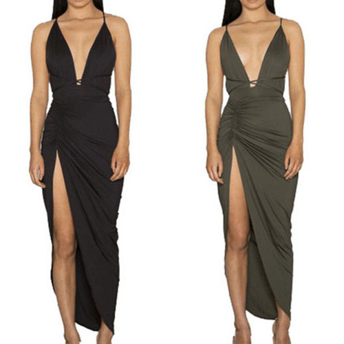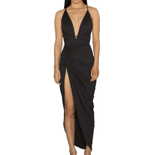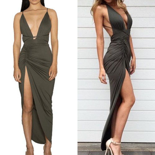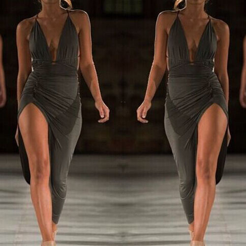 Sling style,its flirty designs such as backless,deep v-neck and slit hem make this dress so sexy