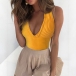 Sexy Backless Deep V-neck Solid Color Slim Fit Halter Crop Top