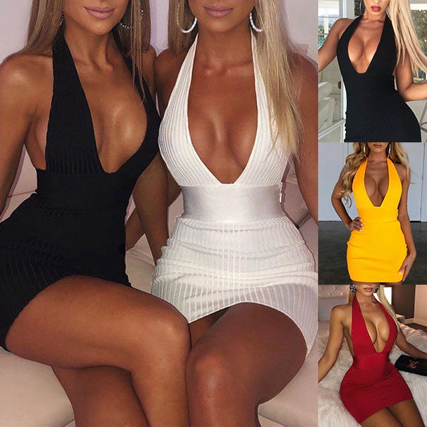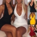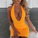 Sexy Backless Deep V-neck Solid Color Slim Fit Halter Dress