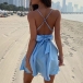Sexy Backless Deep V-neck Solid Color Sling Dress