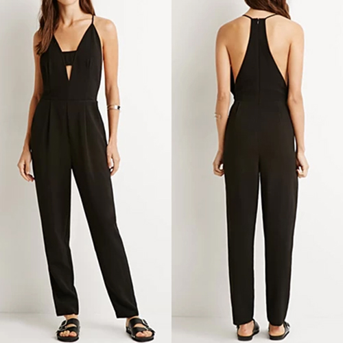 Sling style,boasting a mysterious and flattering black color,with backless and deep v-neck design,