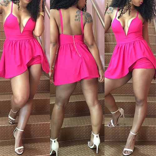 This romper can still give you a sexy and sultry style. Sling style,with backless,deep v-neckline and