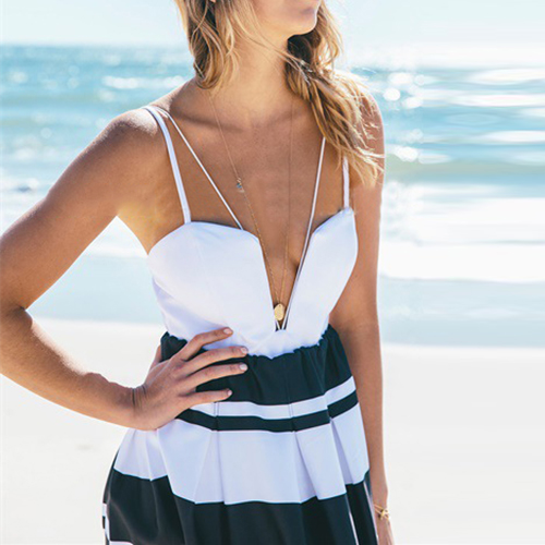 Sexy Backless Deep V-neck Striped Spliced Sling Dress