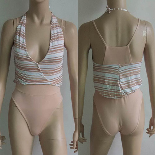 two pieces:a backless deep v-neck tops and a sling romper. Wearing them lying on the beach,so relaxing!