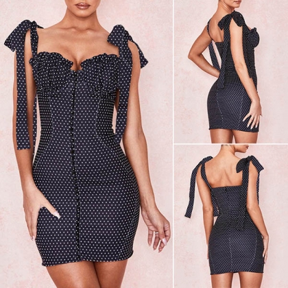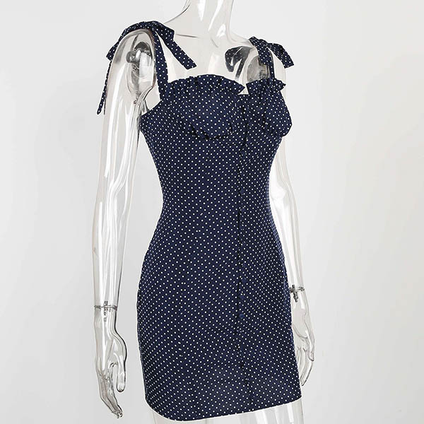 Sexy Backless Dots Printed Lace-up Sling Dress