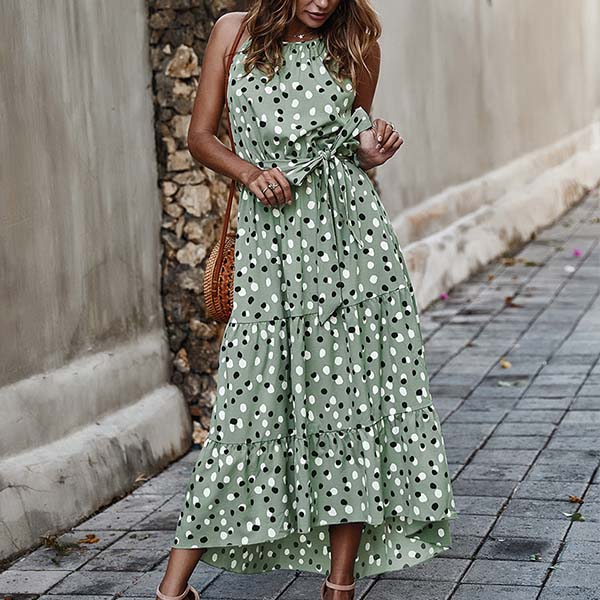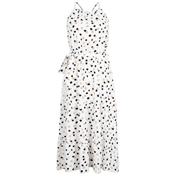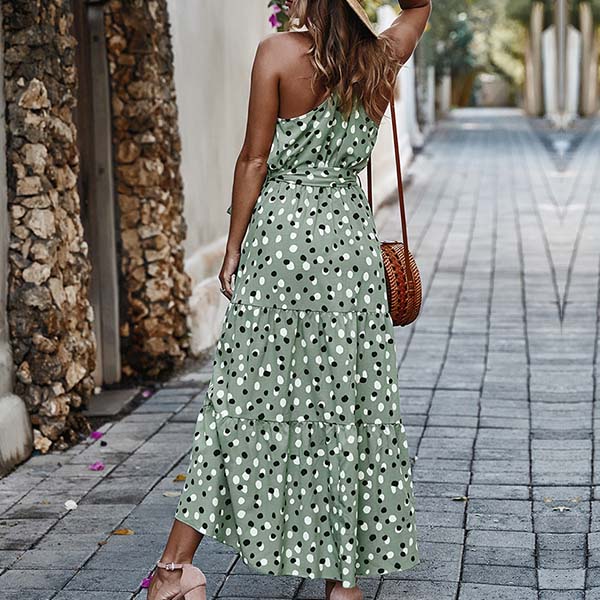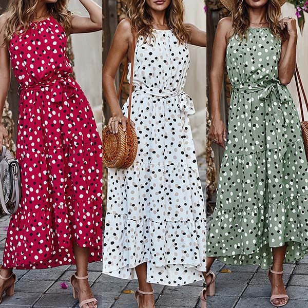 For a beautiful and charming trip look,you can just trust in this dress. Sling style and backless design can offer you a sexy and flirty look,while the dots printed details will make this piece look more eye-catching and playful. Greet the summer days with this delightful dress.