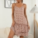 Sexy Backless Dual-layer Ruffle Hem Dots Printed Sling Dress