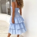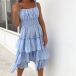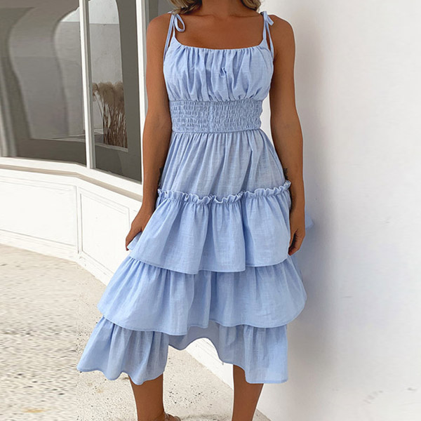 Sexy Backless Elastic High Waist Cake Hem Solid Color Sling Dress