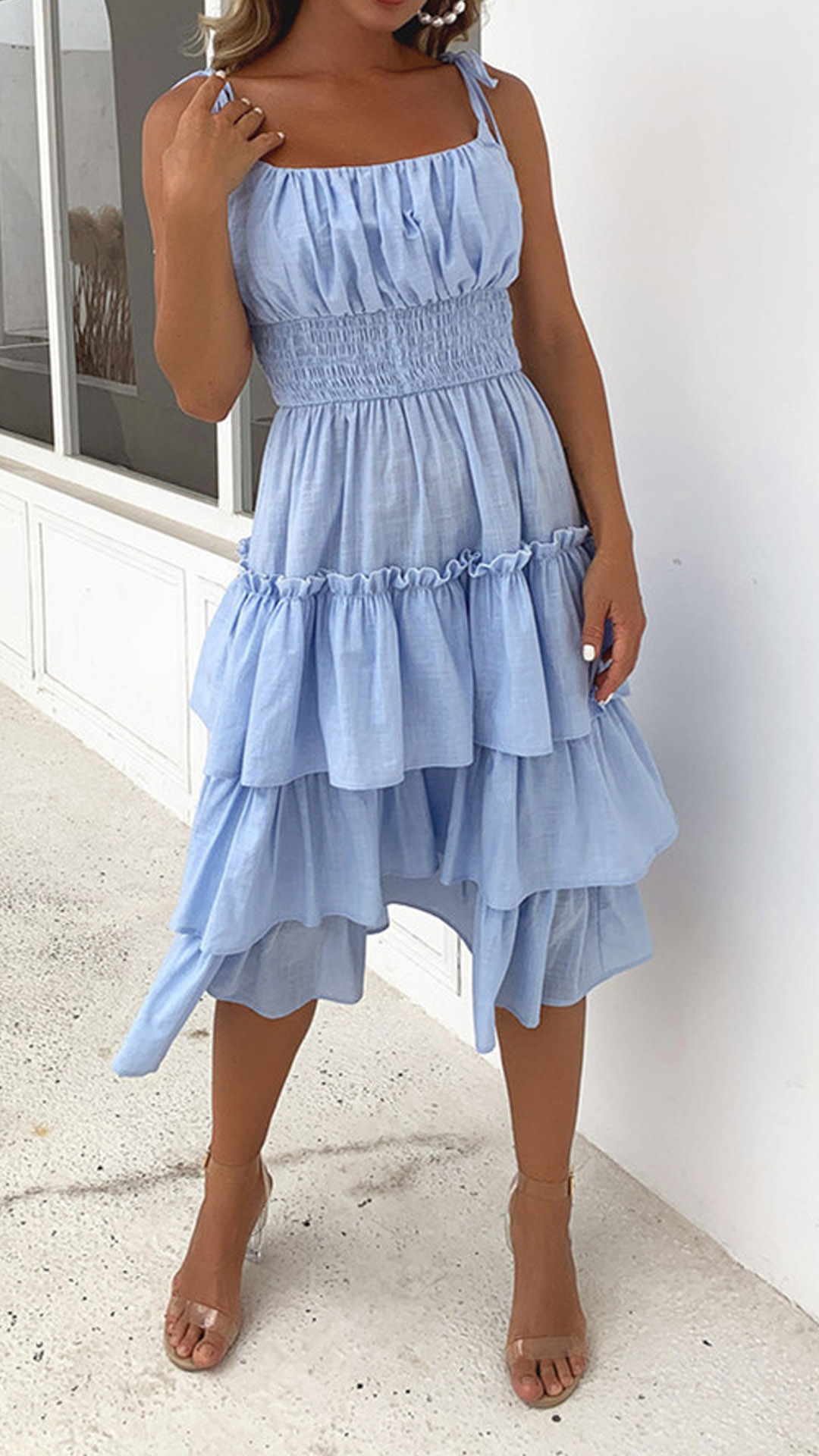 Walk on the streets with your boyish charm portrayed when adorning a dress such as this creation. Sling and backless design make this piece look so sexy and seductive,while the elastic high waist and cake hem design can help portray your slender figure and waistline. Why not slip into this dress to enjoy your summer days?