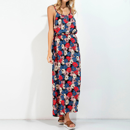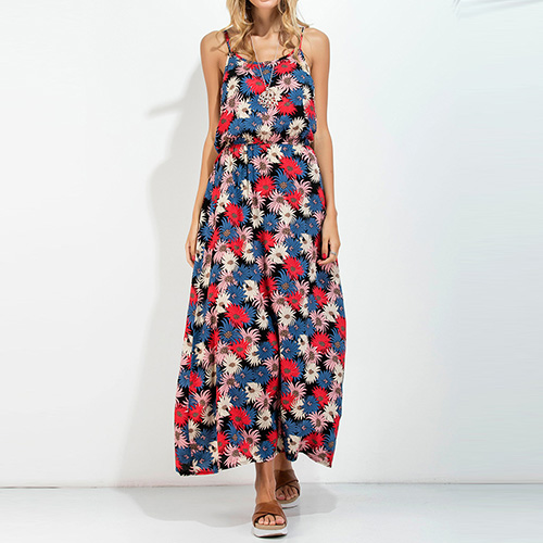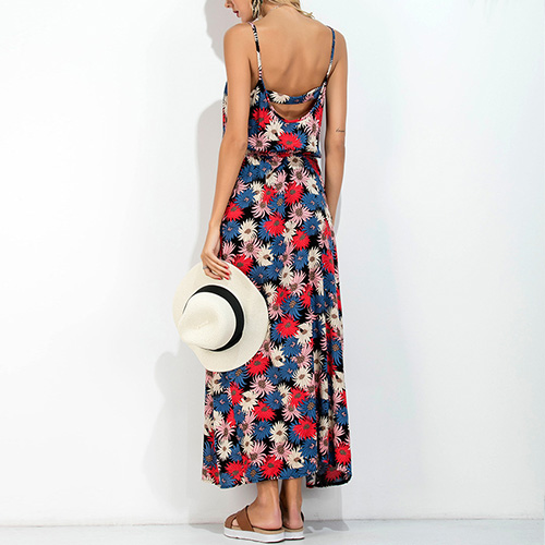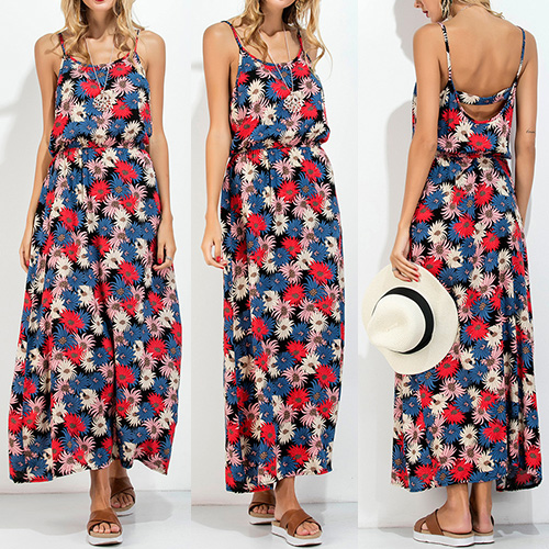 summer weddings and evening events. Sling style,outfitted with vibrant floral print,backless,an elastic waist and a maxi