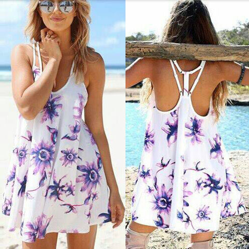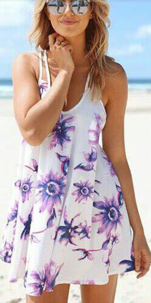 All eyes will be on you in this mini dress. It features an allover floral print ,