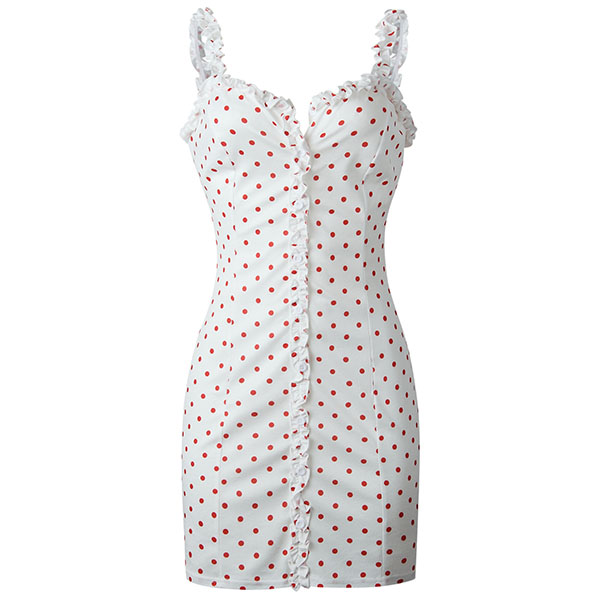This sling dress is the perfect addition to your warmer weather wardrobe ensemble. Features chic and playful printed details,with backless,front-button and a fit silhouette,this dress can portray your slender figure while it exudes your charming feminine appeal.
