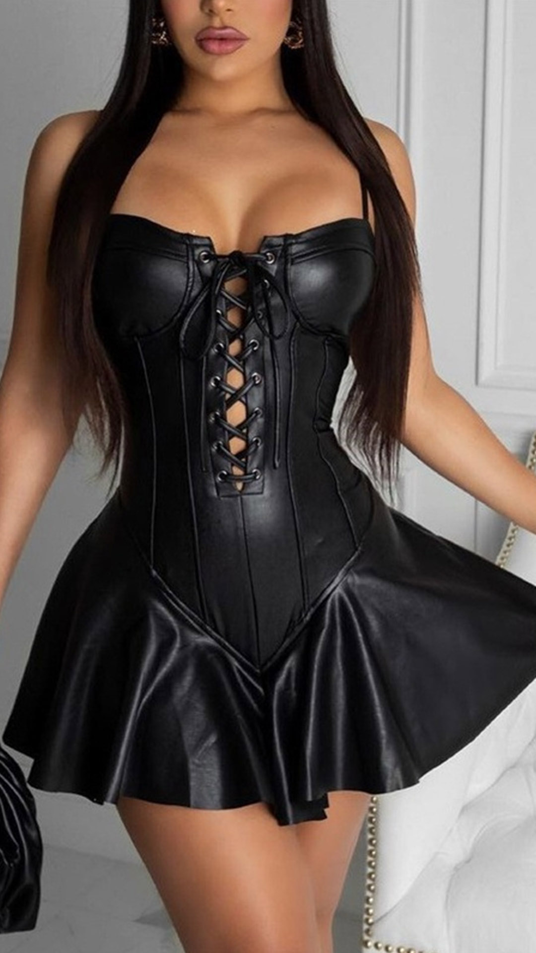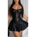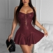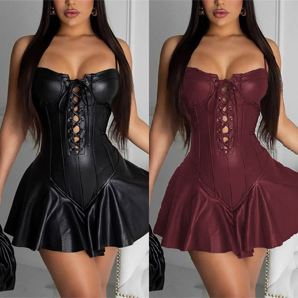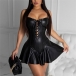 Sexy Backless Front Lace-up Solid Color Sling PU Leather Skirt