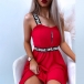 You can easily be an eye-catching sight to draw more attention when you dress yourself up with this dress. The letters details around the shoulder and waist part as well as the front-zipper design make this piece look so distinctive,while the backless design will exude your flirty and feminine side. Enjoy your summer days with this wonderful piece.