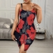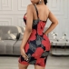 Sexy Backless Front-zipper Slim Fit Printed Sling Dress