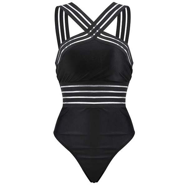 Sexy Backless Gauze Spliced One-piece Swimsuit