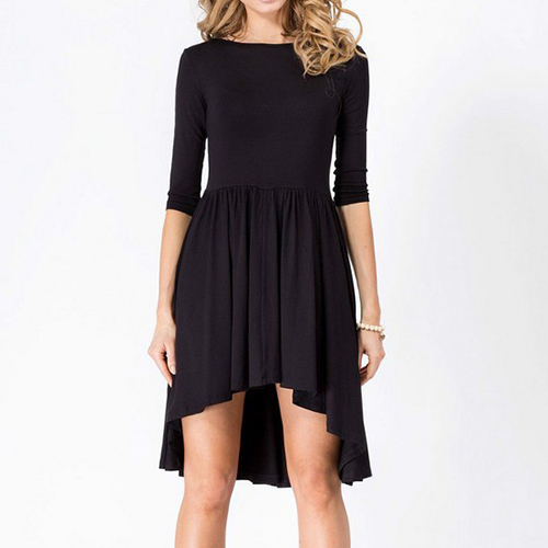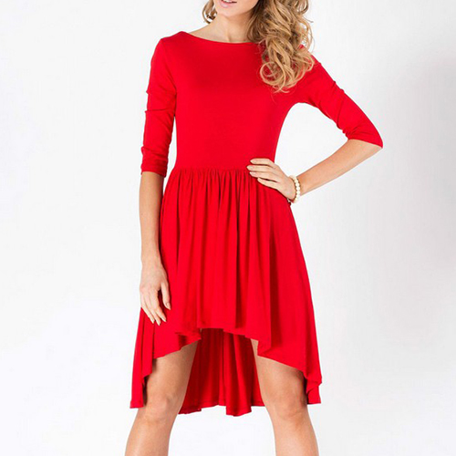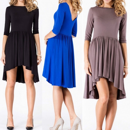 Its cozy fabric with v-shaped backless,half sleeve,round neckline and high-low hem make this dress