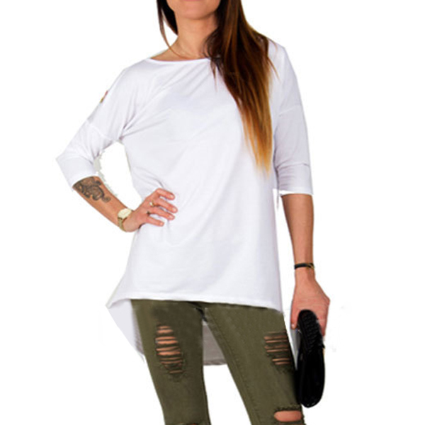 high-low hem and v-shaped backless details,this t-shirt is a perfect combination of cozy,chic and sexy elements.