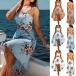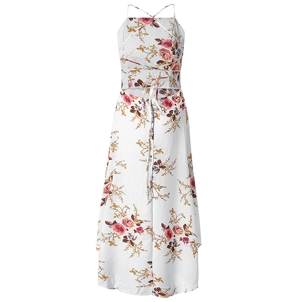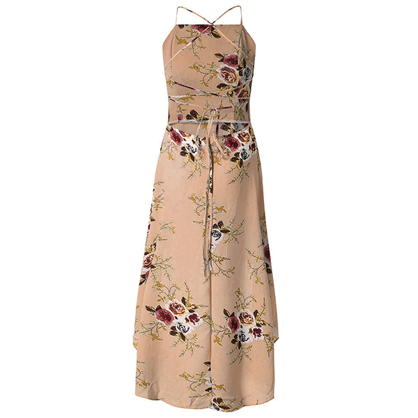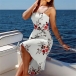 Sexy Backless High-low Hem High Waist Slim Fit Printed Sling Dress