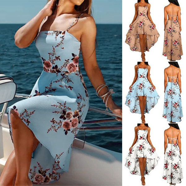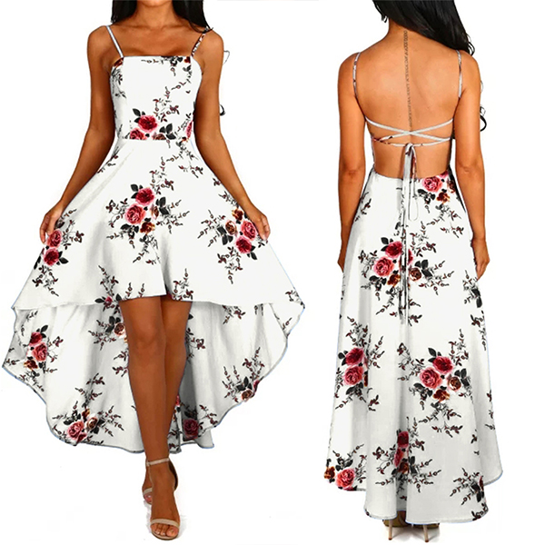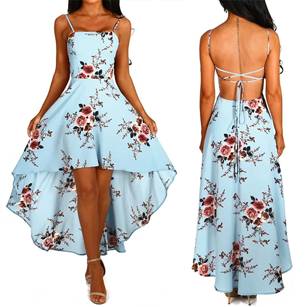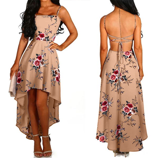 No matter when and where you are,you can easily be the focus when you dress yourself up with this dress. Sling and backless design will offer you a more alluring. What's more,the high-low hem and printed details will make this piece look more distinctive and eye-catching. You can trust in this piece to express your beauty and charm.
