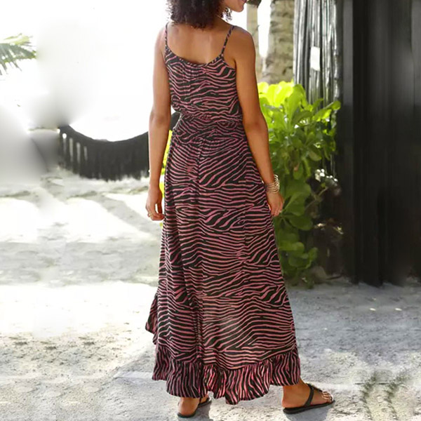 To greet the sun-soaked summer days,this cozy yet sexy dress can easily strike your mind. Sling style,with backless and a high-low hem design,this dress can lend you a dash of sexy yet sweet vibes. Try to match with your sweet straw hat to achieve for a beautiful summer look.