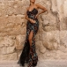 Want to make the maximum impact with minimal effort? Then slip into this dress. The colorful printed details can help you arouse more attention. Sling style,with backless and high slit hem design,this dress definitely can showcase your sexy and alluring side. So why not save this little stunner for your night events?