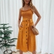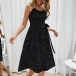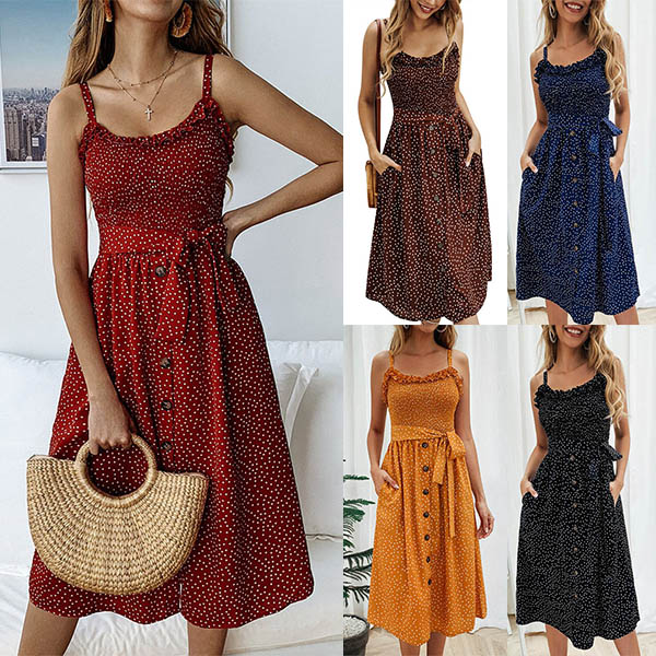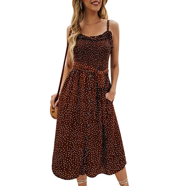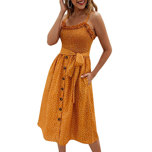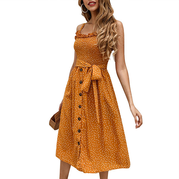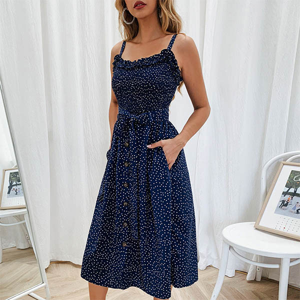 Just step out to greet the sun-soaked summer days with this dreamy and beautiful dress. Sling style,with backless and high waist design,this dress not only can showcase your slender figure,but also can express your sexy and flirty vibes. On these sunny days,adding a sweet straw hat would be more perfect!