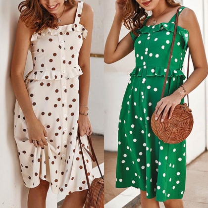 On these summer nights when you have a dating with your lover,you can choose this dress to make you look beautiful and charming. Sling style,with backless design,which can exudes your flirty and feminine side,while the dots printed design will offer you a more playful and eye-catching look. Also perfect fit for your beach days and tropical getaways.