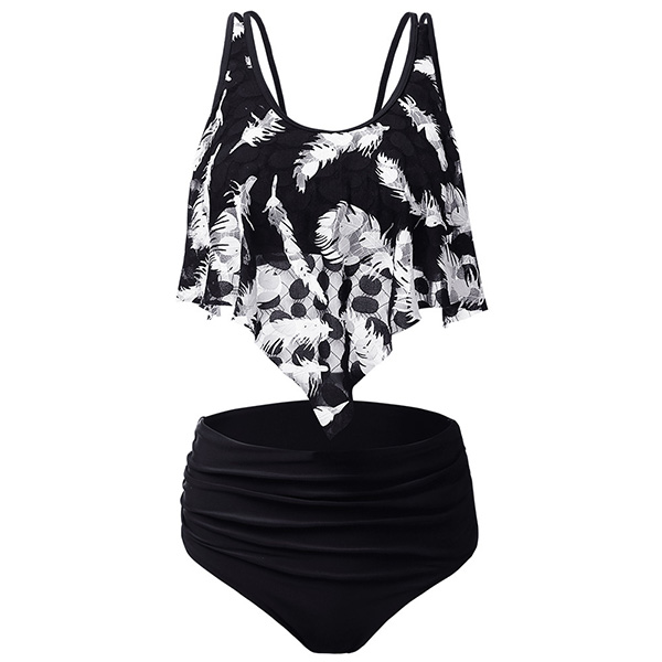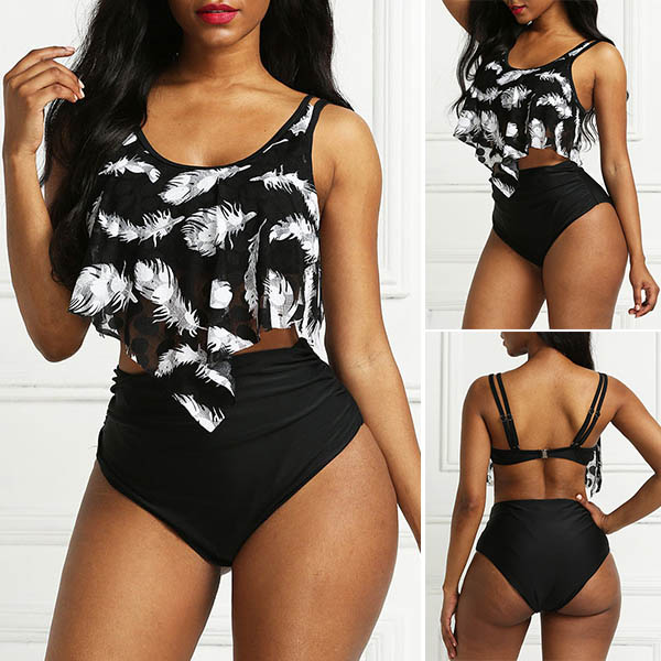 When you wanna head to the seaside to relax yourself,you can just slip into this bikini set! Including a high waist bikini bottom and a backless bikini top,with feather printed pattern,this bikini set can showcase your seductive curve while it maintains the comfy.