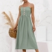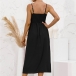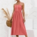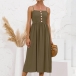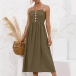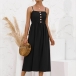 Sexy Backless High Waist Front-button Solid Color Sling Dress