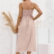 You can just slip into this dress to greet the arrival of the summer days. Sling style,with backless and high waist design,this dress not only can showcase your slender figure,but also can exude your flirty side. And the front-button details will make this piece look more attractive. So why not add this piece to your summer wardrobe ensemble?