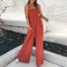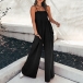 Wow,how could you look so charming and flirty in this jumpsuit? Sling style,with backless and front-pocket design,this little stunner can express your charming feminine appeal,while the high waist and wide-leg silhouette design can better portray your slender figure. When you go out with this piece,you can easily win more envious eyes.