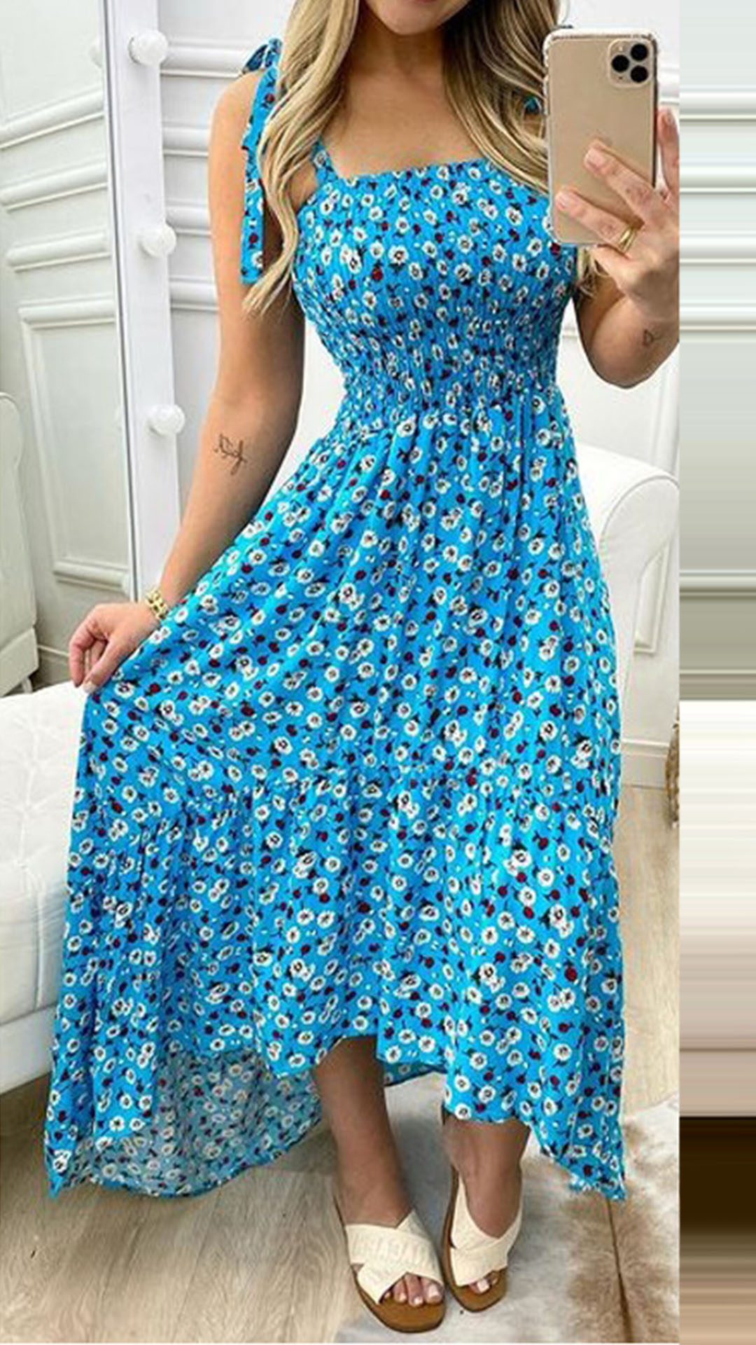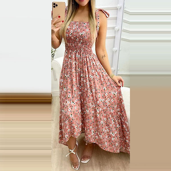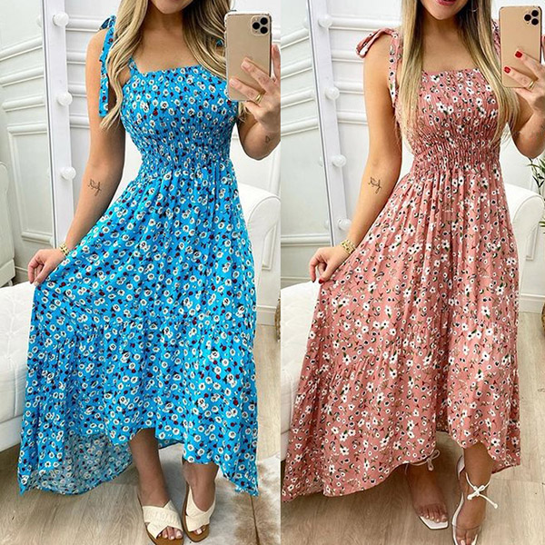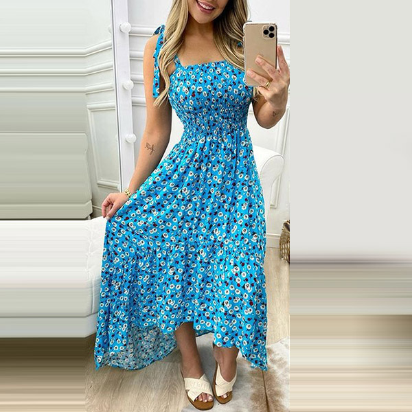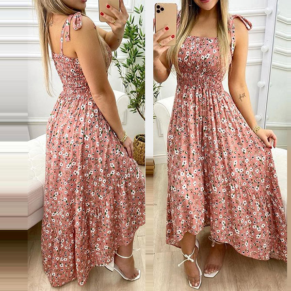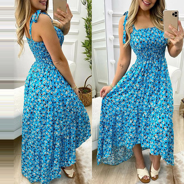 As for a sexy and charming summer look,you can just throw yourself into this printed dress. Its vibrant floral print details can help you catch more eyes. Sling style,with backless,high waist and a high-low hem design,this dress makes it easy for any girl to look effortlessly charming and beautiful.