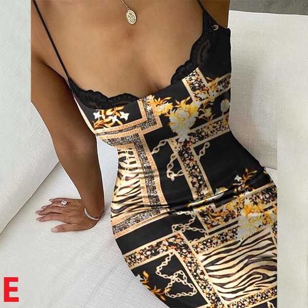 Sexy Backless High Waist Lace Spliced Slim Fit Sling Printed Dress