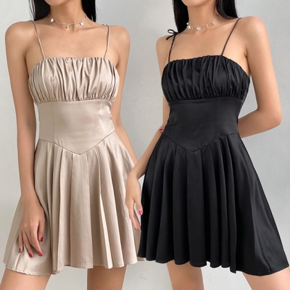 It is an easy thing to achieve for a sexy and charming look with the help of this dress. Sling style,with backless,high waist and pleated hem design,this piece not only can showcase your perfect curve,but also can make you look more alluring. So why not slip into this dress to express your beauty and charm?