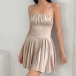 Sexy Backless High Waist Pleated Hem Solid Color Sling Dress