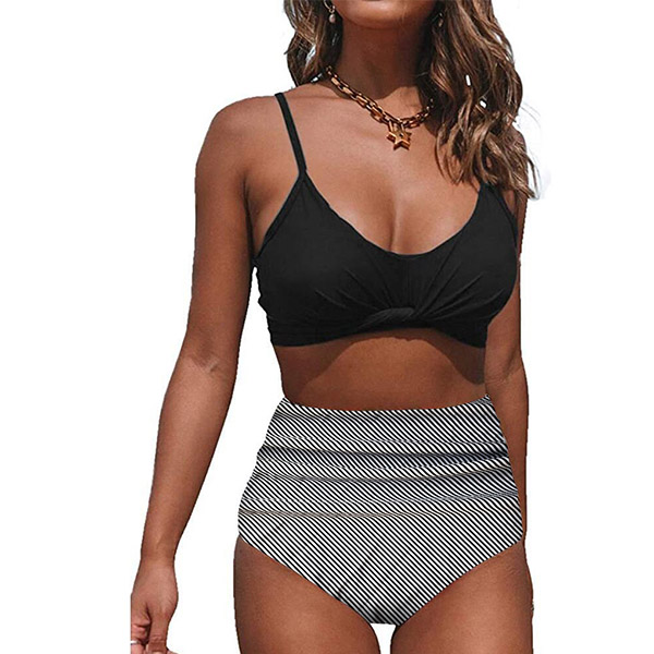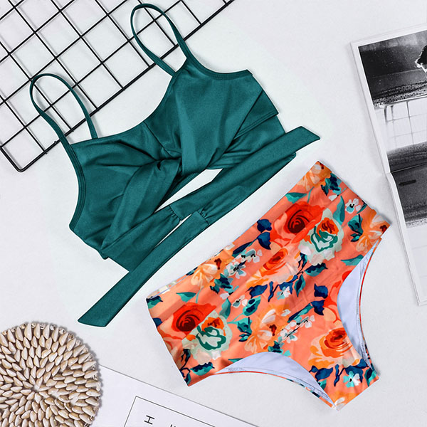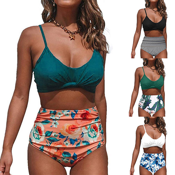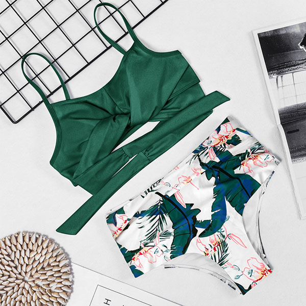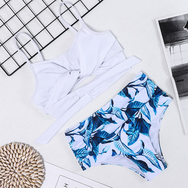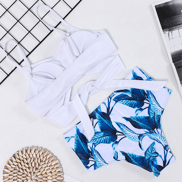 Enjoy your beach days with this cozy yet sexy bikini set. Including a high waist printed bikini briefs and a backless bikini top,this bikini set can expose your charming skin and seductive curve. So why not take interest in them?
