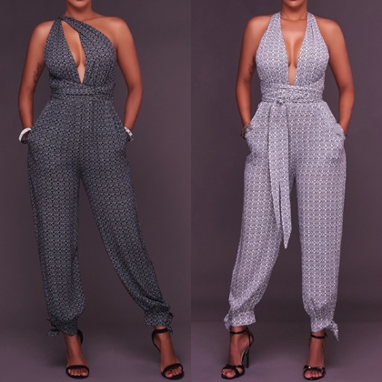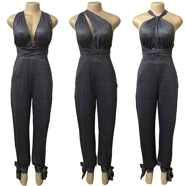 This jumpsuit can offer you three different wearing styles:deep v-neck style,one-shoulder style and halter style.