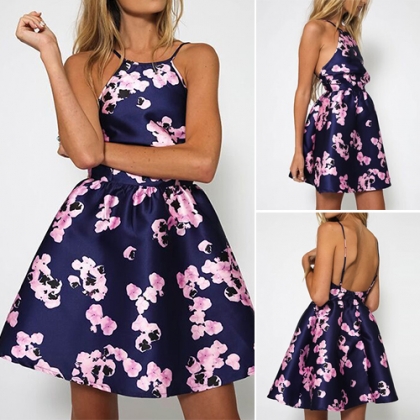 your ensemble. Sling style,boasting a vibrant floral print,with backless and high waist design,